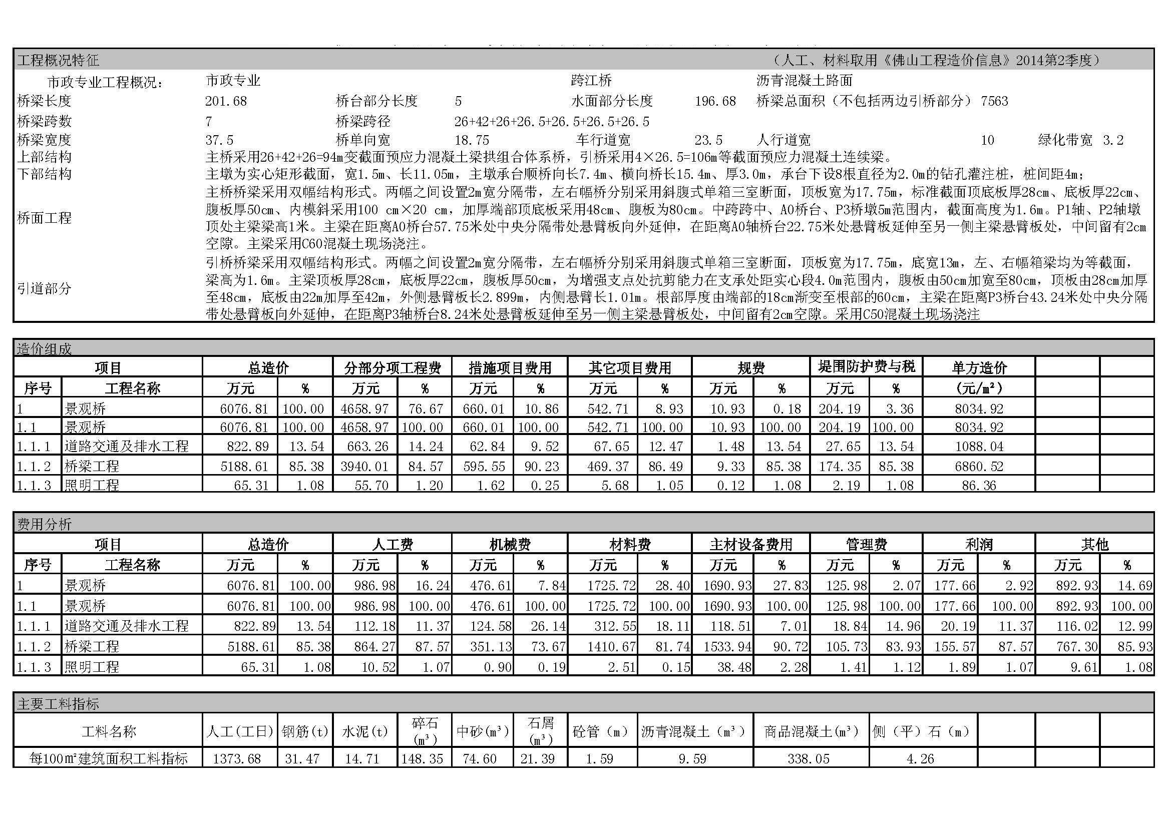 佛山市2014年第4季度技術經濟指標分析—某景觀橋工程案例
