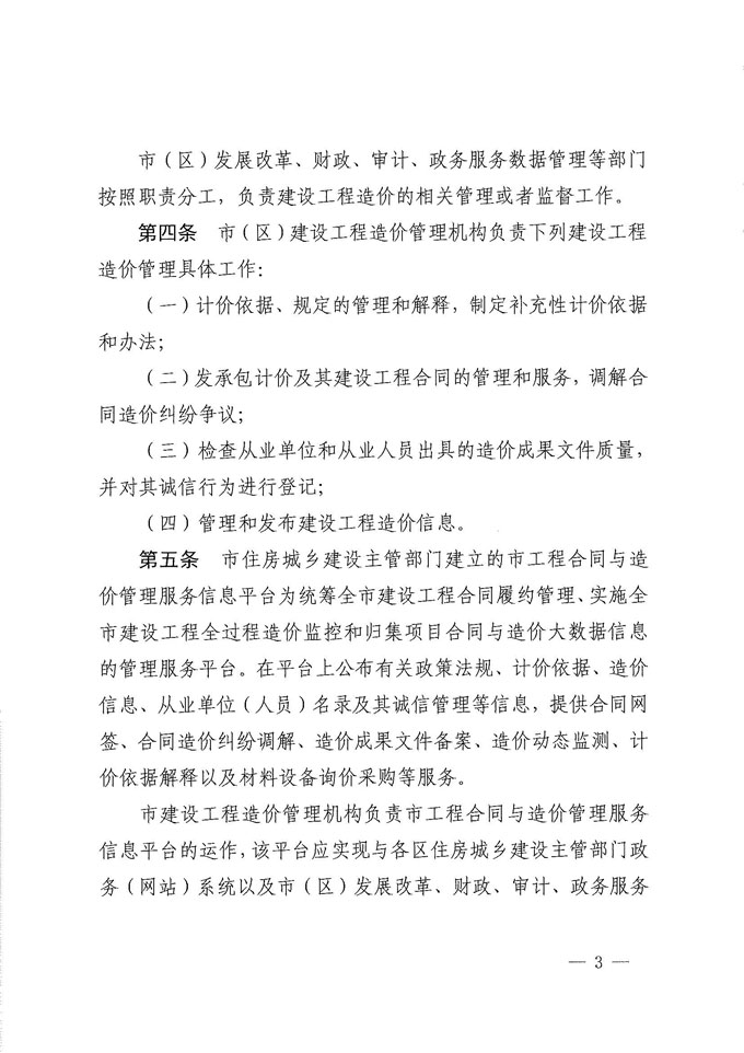 依照省府205號令,明確了我市建設工程造價活動的監管主體部門,其所屬的工程造價管理機構對造價管理實務工作具體負責,并明確了有關實務工作內容。提出了發改、財政、審計、監察等部門按各自職責分工負責建設工程造價管理工作。近年來我市在全省率先垂范的企業誠信管理、工程造價監管、合同網簽和成果文件電子化備案等信息化工作經驗成果凝聚的工程合同與造價服務信息平臺,已能滿足省府205號令有關造價監管信息平臺建設的功能要求。并要求進一步落實做到與省工程造價信息化平臺無縫對接,與各區建設主管部門本系統上下互聯互通,與發改、財政、審計、工商、地稅和政務服務數據管理等跨部門也應互聯互通、信息共享。