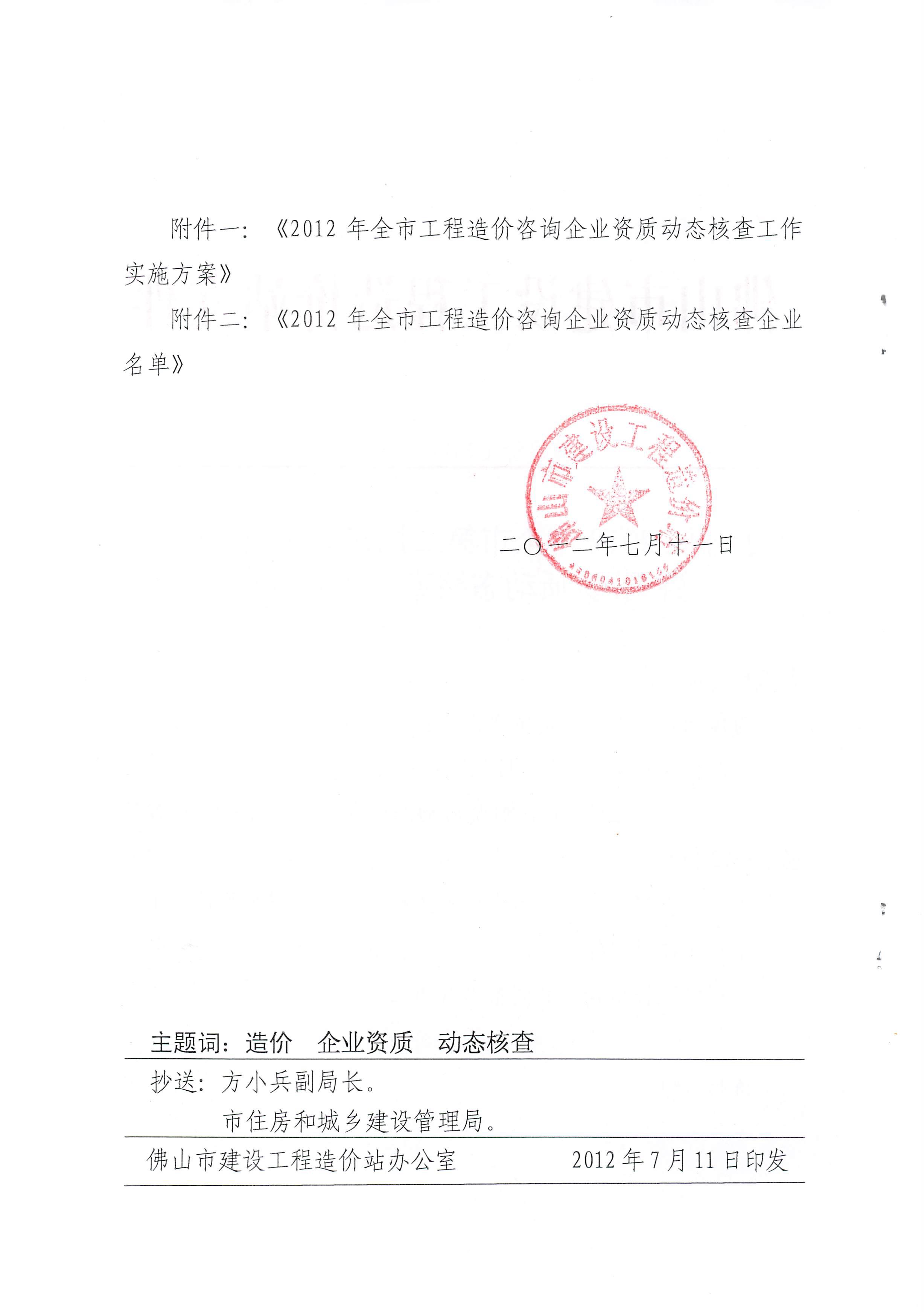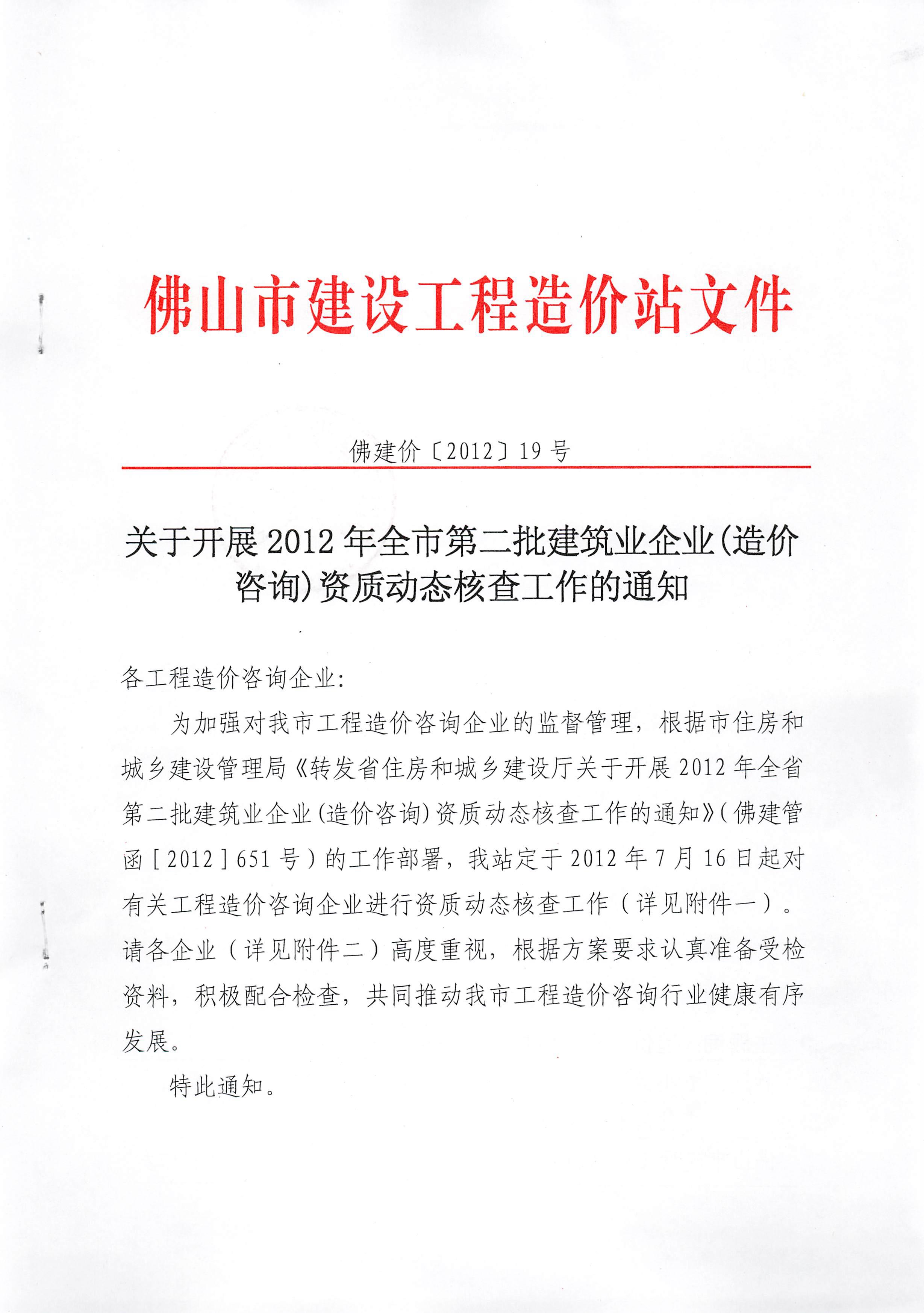 關于開展2012年全市第二批建筑業企業(造價咨詢)資質動態核查工作的通知
