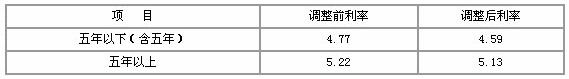 從2008年9月16日起,下調個人住房公積金貸款利率。五年期以下(含五年)由現行的4.77%調整到4.59%,下調0.18個百分點;五年期以上由現行的5.22%調整到5.13%,下調0.09個百分點。